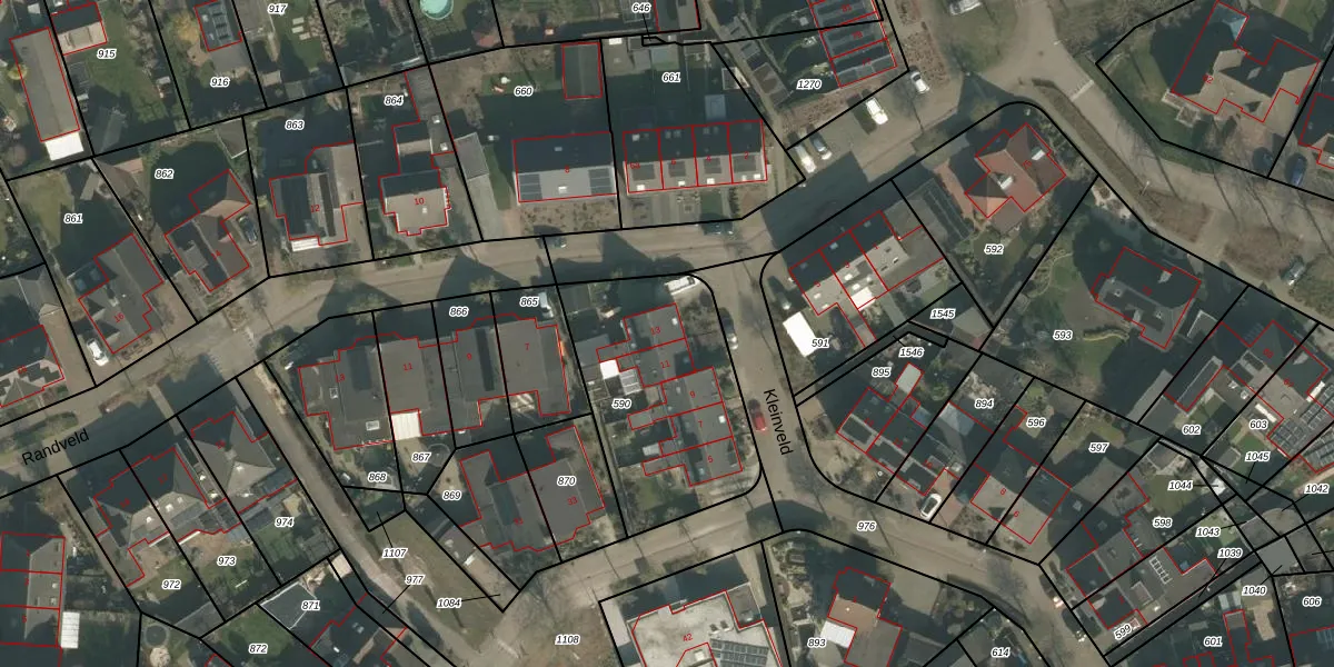 Het perceel waarop Kleinveld 13 staat heeft een oppervlakte van 800 m². Dit is een groot perceel. De perceeloppervlakte wordt geregistreerd door het Kadaster. Gedetailleerde informatie over de maten van dit perceel kunt u vinden in het rapport Kadastrale kaart met maatvoering van Kleinveld 13.