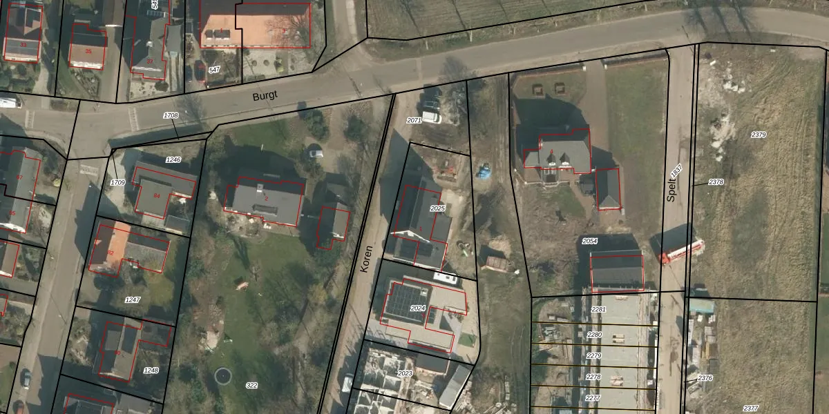 Het perceel waarop Koren 1 staat heeft een oppervlakte van 558 m². Dit is een groot perceel. De perceeloppervlakte wordt geregistreerd door het Kadaster. Gedetailleerde informatie over de maten van dit perceel kunt u vinden in het rapport Kadastrale kaart met maatvoering van Koren 1.
