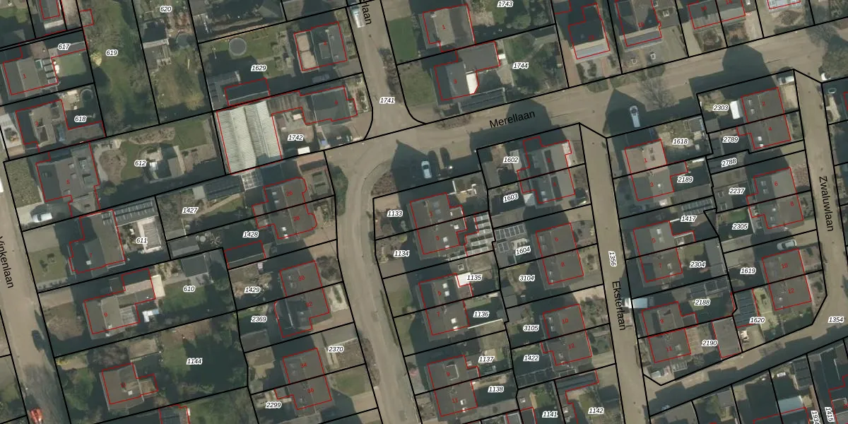 Het perceel waarop Merellaan 1 staat heeft een oppervlakte van 260 m². Dit is een middelgroot perceel. De perceeloppervlakte wordt geregistreerd door het Kadaster. Gedetailleerde informatie over de maten van dit perceel kunt u vinden in het rapport Kadastrale kaart met maatvoering van Merellaan 1.