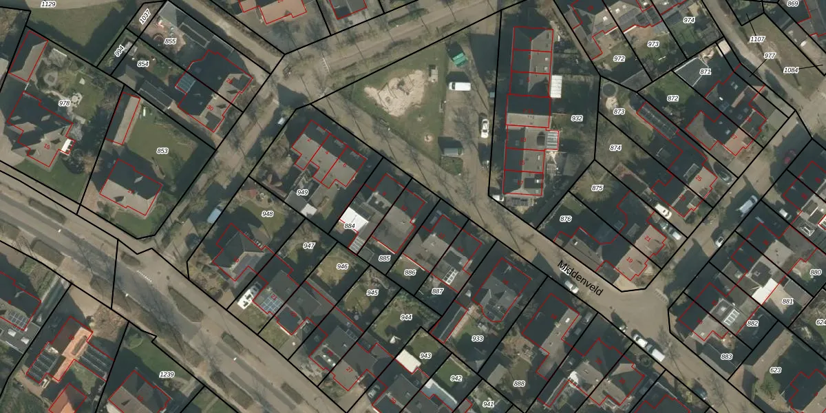 Middenveld 10 is gelegen op kadastraal perceel BKL05N885. Deze kadastrale aanduiding is uniek en wordt gebruikt door het Kadaster om eigendomsrechten en andere zakelijke rechten vast te leggen. Het perceel maakt onderdeel uit van de kadastrale gemeente Boekel.