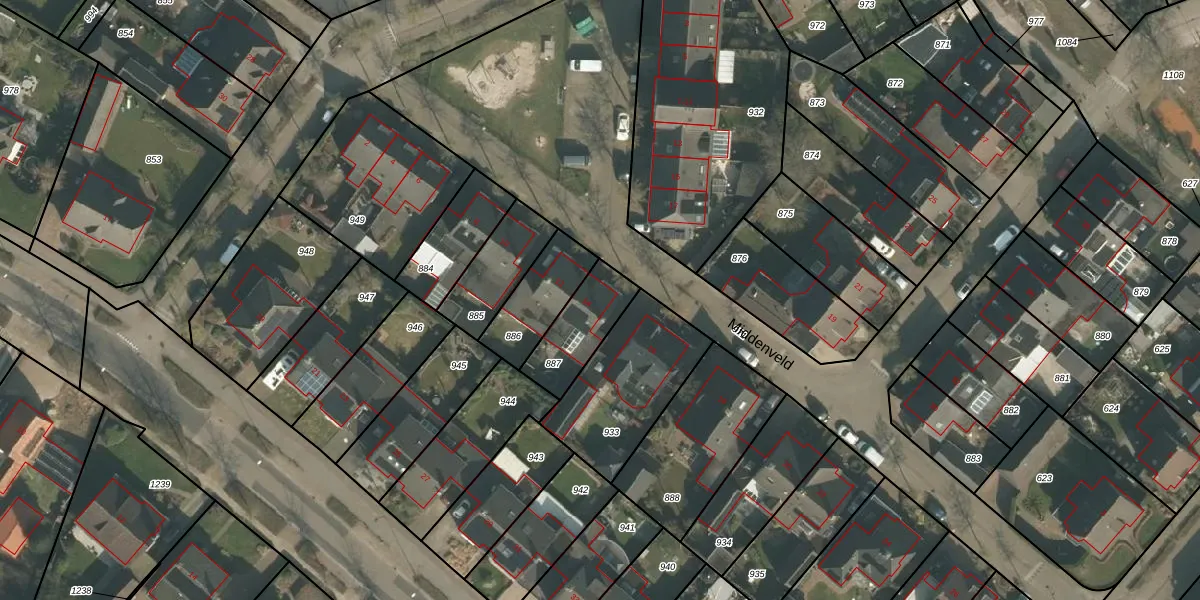 Het perceel waarop Middenveld 14 staat heeft een oppervlakte van 195 m². Dit is een middelgroot perceel. De perceeloppervlakte wordt geregistreerd door het Kadaster. Gedetailleerde informatie over de maten van dit perceel kunt u vinden in het rapport Kadastrale kaart met maatvoering van Middenveld 14.