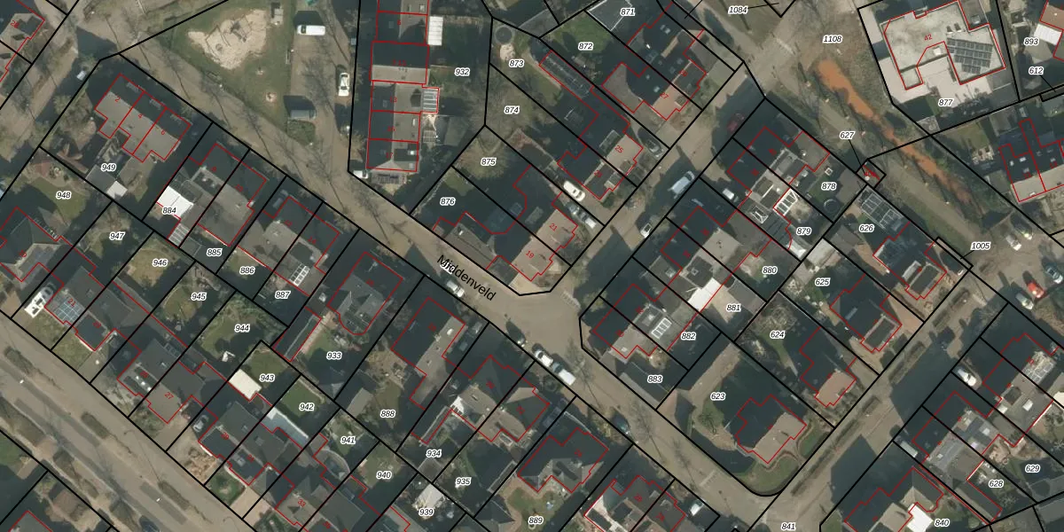 Het perceel waarop Middenveld 19 staat heeft een oppervlakte van 322 m². Dit is een groot perceel. De perceeloppervlakte wordt geregistreerd door het Kadaster. Gedetailleerde informatie over de maten van dit perceel kunt u vinden in het rapport Kadastrale kaart met maatvoering van Middenveld 19.