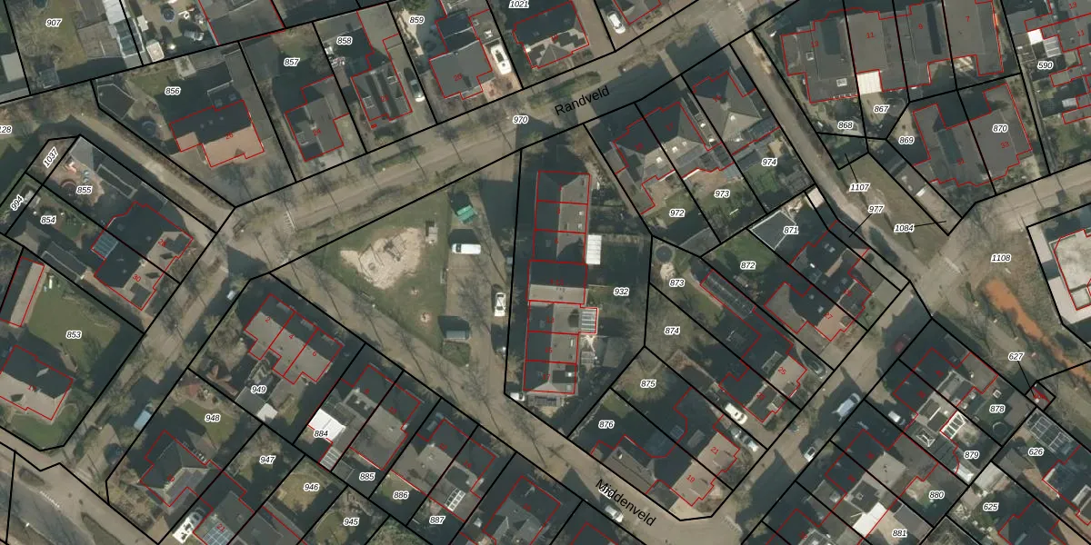 Het perceel waarop Middenveld 7 staat heeft een oppervlakte van 1118 m². Dit is een zeer groot perceel. De perceeloppervlakte wordt geregistreerd door het Kadaster. Gedetailleerde informatie over de maten van dit perceel kunt u vinden in het rapport Kadastrale kaart met maatvoering van Middenveld 7.