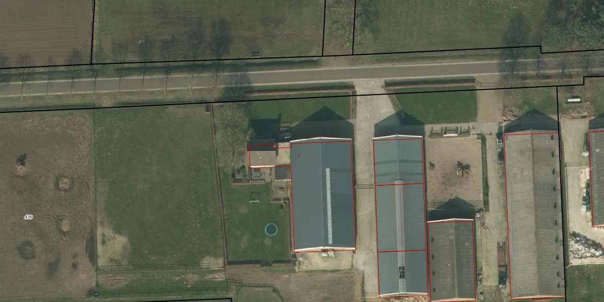 Het perceel waarop Rietven 4 staat heeft een oppervlakte van 2,4 ha. Dit is een zeer groot perceel. De perceeloppervlakte wordt geregistreerd door het Kadaster. Gedetailleerde informatie over de maten van dit perceel kunt u vinden in het rapport Kadastrale kaart met maatvoering van Rietven 4.