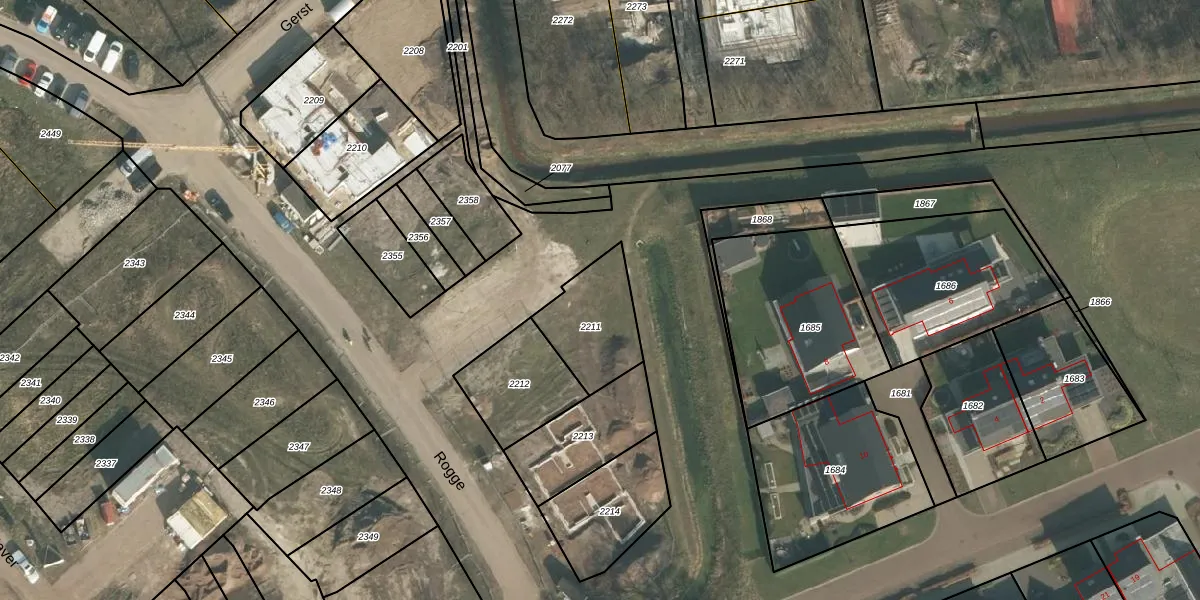 Het perceel waarop Rogge 13 staat heeft een oppervlakte van 264 m². Dit is een middelgroot perceel. De perceeloppervlakte wordt geregistreerd door het Kadaster. Gedetailleerde informatie over de maten van dit perceel kunt u vinden in het rapport Kadastrale kaart met maatvoering van Rogge 13.