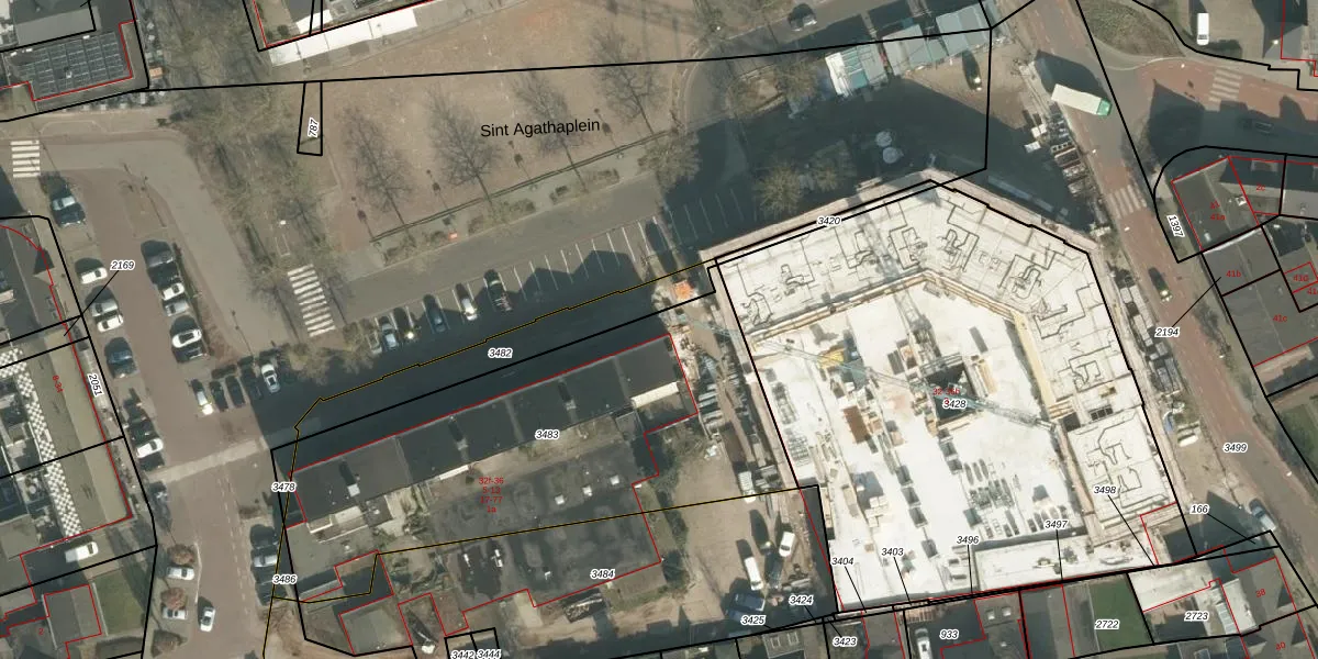 Het perceel waarop Sint Agathaplein 71 staat heeft een oppervlakte van 1939 m². Dit is een zeer groot perceel. De perceeloppervlakte wordt geregistreerd door het Kadaster. Gedetailleerde informatie over de maten van dit perceel kunt u vinden in het rapport Kadastrale kaart met maatvoering van Sint Agathaplein 71.