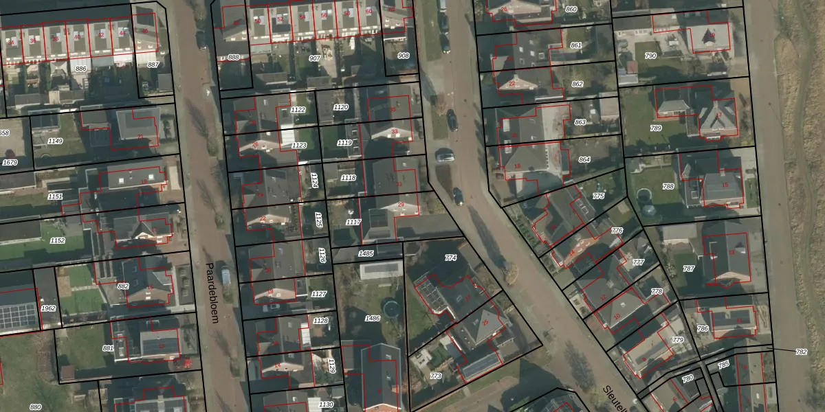 Het perceel waarop Sleutelbloem 29 staat heeft een oppervlakte van 345 m². Dit is een groot perceel. De perceeloppervlakte wordt geregistreerd door het Kadaster. Gedetailleerde informatie over de maten van dit perceel kunt u vinden in het rapport Kadastrale kaart met maatvoering van Sleutelbloem 29.