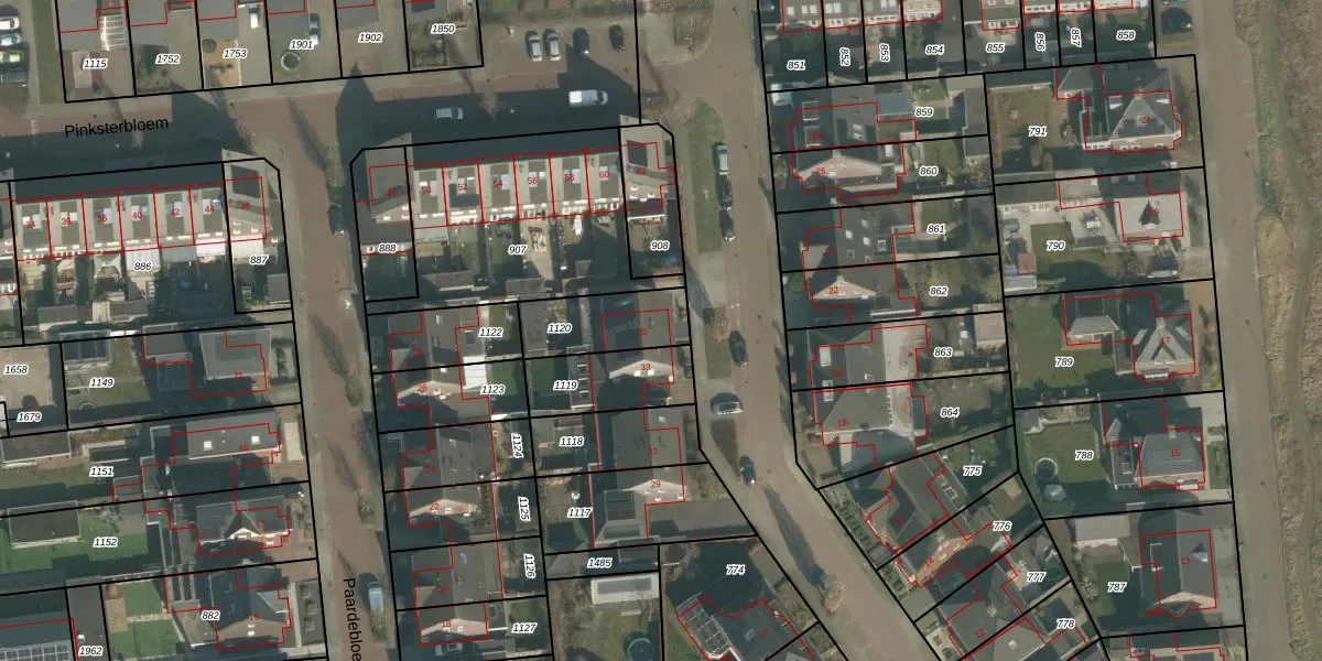 Gebruik de zoekbalk of klik op een perceel voor informatie over de adressen binnen dit perceel.
