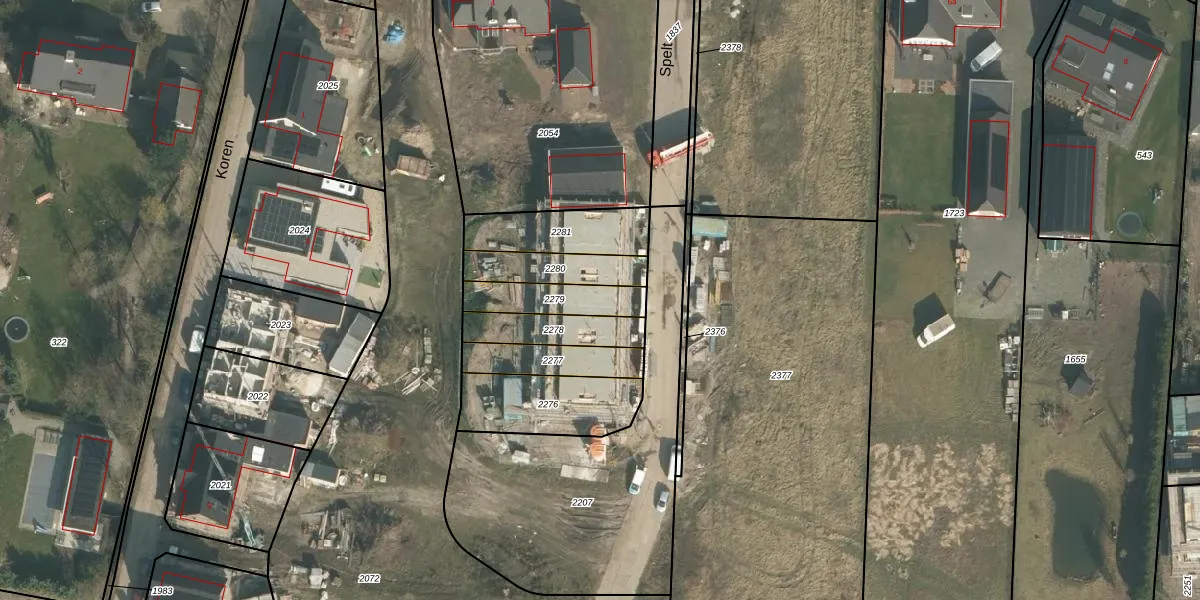 Het perceel waarop Spelt 5 staat heeft een oppervlakte van 156 m². Dit is een middelgroot perceel. De perceeloppervlakte wordt geregistreerd door het Kadaster. Gedetailleerde informatie over de maten van dit perceel kunt u vinden in het rapport Kadastrale kaart met maatvoering van Spelt 5.