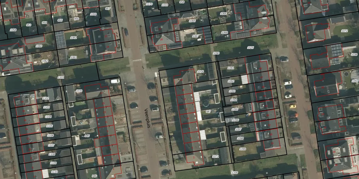 Het perceel waarop Veenpluis 16 staat heeft een oppervlakte van 1211 m². Dit is een zeer groot perceel. De perceeloppervlakte wordt geregistreerd door het Kadaster. Gedetailleerde informatie over de maten van dit perceel kunt u vinden in het rapport Kadastrale kaart met maatvoering van Veenpluis 16.