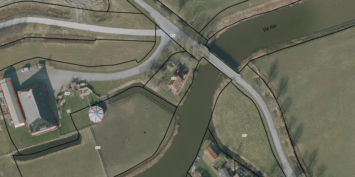 Het adres ligt op het perceel RIE00-XY-208, dat zich in de kadastrale gemeente Ried bevindt. De gemiddelde perceelgrootte in Ried is 1,2 ha. Dit perceel is kleiner: de perceeloppervlakte bedraagt 540 m². Het grootste perceel in de kadastrale gemeente is 32,1 ha. Het kleinste perceel heeft een oppervlakte van 3 m². Er zijn geen andere adressen aanwezig op het perceel. De huidige grenzen van het perceel zijn digitaal in de Basisregistratie Kadaster (BRK) geregistreerd op 30-09-2023.