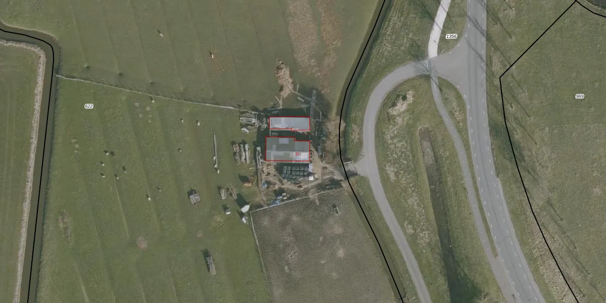 Het adres ligt op het perceel DNM00-F-622, dat zich in de kadastrale gemeente Deinum bevindt. De oppervlakte van het perceel is 2,1 ha. Dat is groter dan gemiddeld in Deinum, waar de gemiddelde perceeloppervlakte op 6613,82 m² ligt. De grootste perceeloppervlakte in de kadastrale gemeente is 13,8 ha. De kleinste oppervlakte bedraagt 0 m². Dit is het enige adres dat aanwezig is op het perceel. In de Basisregistratie Kadaster (BRK) werden de grenzen van het perceel geregistreerd op 14-11-2012.