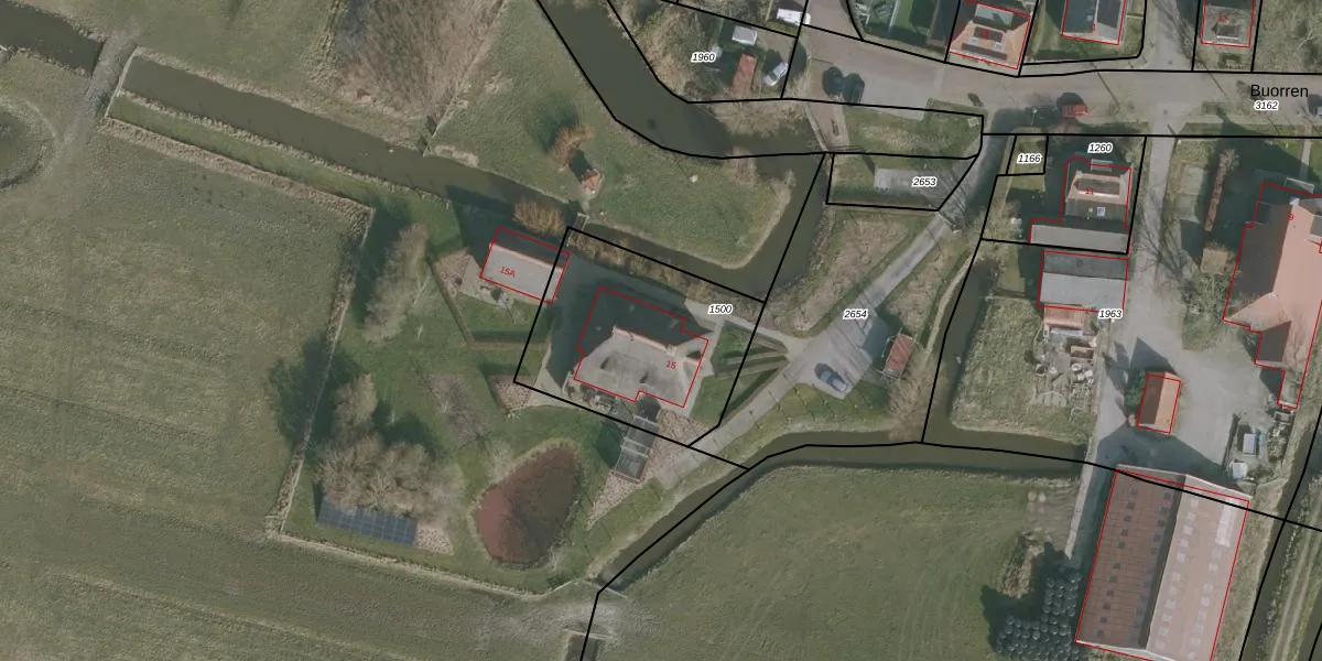 Het perceel waarop Buorren 15 staat heeft een oppervlakte van 780 m². Dit is een groot perceel. De perceeloppervlakte wordt geregistreerd door het Kadaster. Gedetailleerde informatie over de maten van dit perceel kunt u vinden in het rapport Kadastrale kaart met maatvoering van Buorren 15.