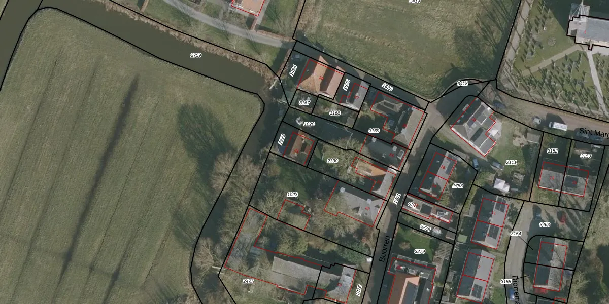 Het perceel waarop Buorren 31 staat heeft een oppervlakte van 142 m². Dit is een middelgroot perceel. De perceeloppervlakte wordt geregistreerd door het Kadaster. Gedetailleerde informatie over de maten van dit perceel kunt u vinden in het rapport Kadastrale kaart met maatvoering van Buorren 31.