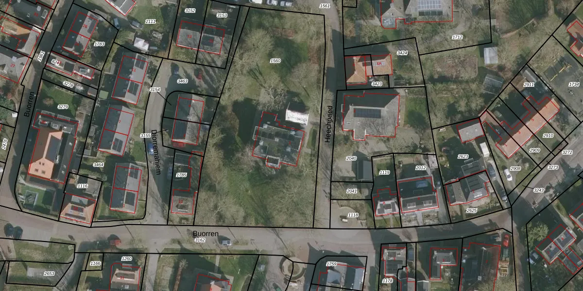 Het perceel waarop Heechpaed 1 staat heeft een oppervlakte van 2595 m². Dit is een zeer groot perceel. De perceeloppervlakte wordt geregistreerd door het Kadaster. Gedetailleerde informatie over de maten van dit perceel kunt u vinden in het rapport Kadastrale kaart met maatvoering van Heechpaed 1.
