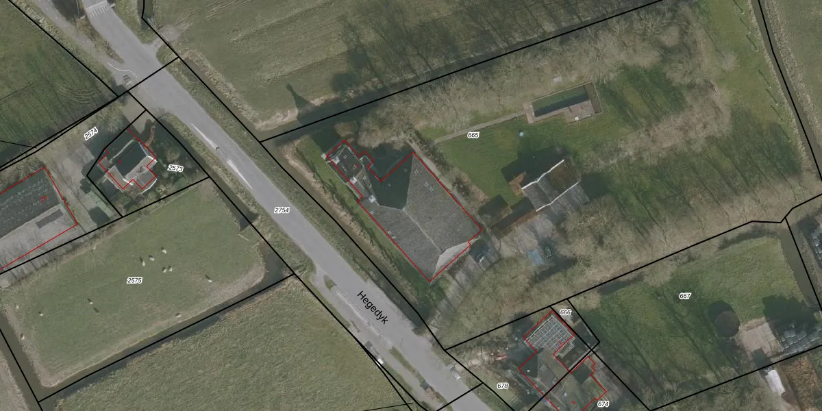 Het perceel waarop Hegedyk 1 staat heeft een oppervlakte van 6780 m². Dit is een zeer groot perceel. De perceeloppervlakte wordt geregistreerd door het Kadaster. Gedetailleerde informatie over de maten van dit perceel kunt u vinden in het rapport Kadastrale kaart met maatvoering van Hegedyk 1.