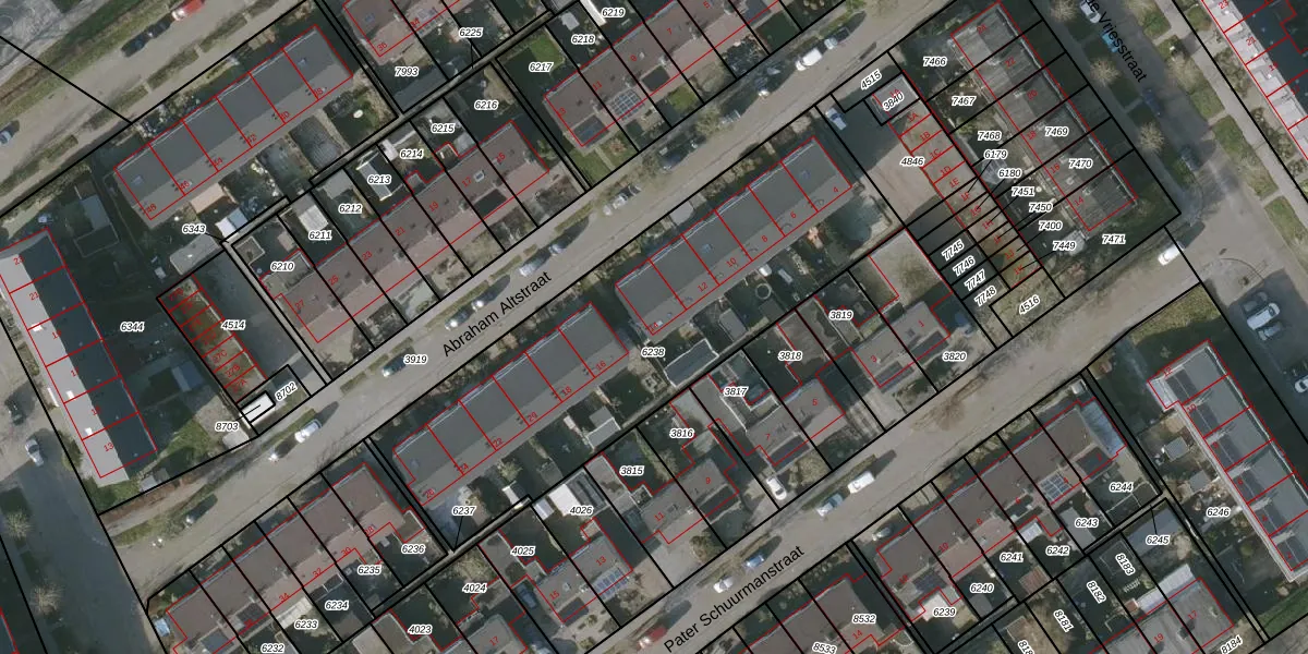 Het perceel waarop Abraham Altstraat 14 staat heeft een oppervlakte van 1960 m². Dit is een zeer groot perceel. De perceeloppervlakte wordt geregistreerd door het Kadaster. Gedetailleerde informatie over de maten van dit perceel kunt u vinden in het rapport Kadastrale kaart met maatvoering van Abraham Altstraat 14.