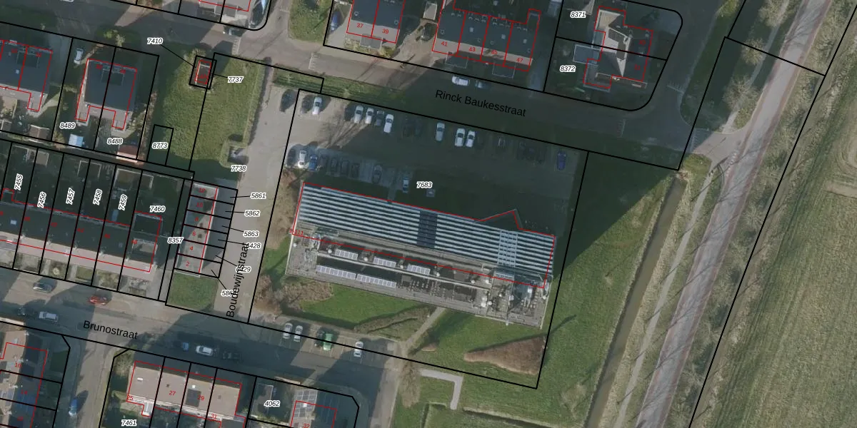 Het perceel waarop Boudewijnstraat 105 staat heeft een oppervlakte van 3900 m². Dit is een zeer groot perceel. De perceeloppervlakte wordt geregistreerd door het Kadaster. Gedetailleerde informatie over de maten van dit perceel kunt u vinden in het rapport Kadastrale kaart met maatvoering van Boudewijnstraat 105.