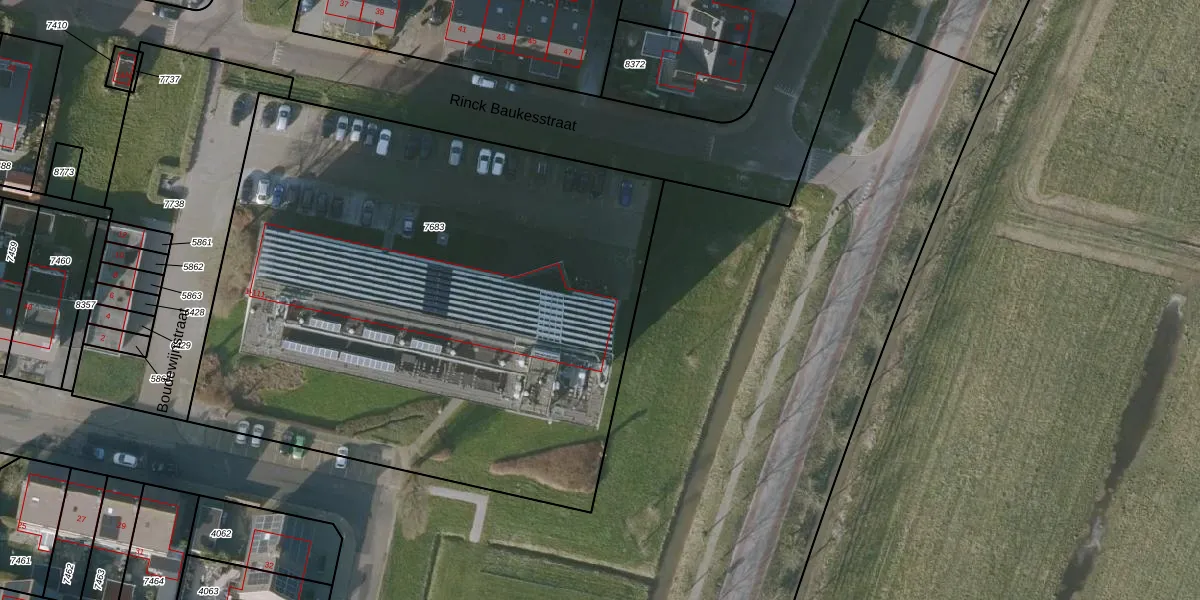 Het perceel waarop Boudewijnstraat 111 staat heeft een oppervlakte van 3900 m². Dit is een zeer groot perceel. De perceeloppervlakte wordt geregistreerd door het Kadaster. Gedetailleerde informatie over de maten van dit perceel kunt u vinden in het rapport Kadastrale kaart met maatvoering van Boudewijnstraat 111.