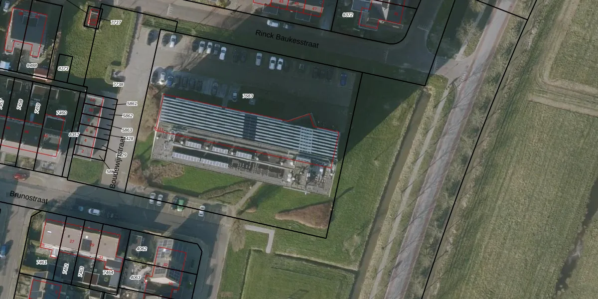 Het perceel waarop Boudewijnstraat 39 staat heeft een oppervlakte van 3900 m². Dit is een zeer groot perceel. De perceeloppervlakte wordt geregistreerd door het Kadaster. Gedetailleerde informatie over de maten van dit perceel kunt u vinden in het rapport Kadastrale kaart met maatvoering van Boudewijnstraat 39.