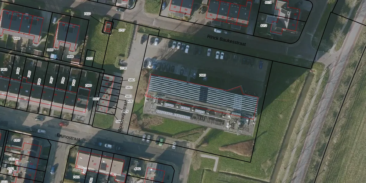 Het perceel waarop Boudewijnstraat 61 staat heeft een oppervlakte van 3900 m². Dit is een zeer groot perceel. De perceeloppervlakte wordt geregistreerd door het Kadaster. Gedetailleerde informatie over de maten van dit perceel kunt u vinden in het rapport Kadastrale kaart met maatvoering van Boudewijnstraat 61.