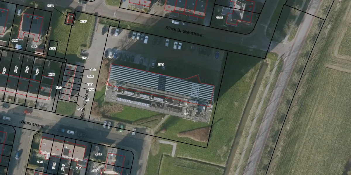 Het perceel waarop Boudewijnstraat 65 staat heeft een oppervlakte van 3900 m². Dit is een zeer groot perceel. De perceeloppervlakte wordt geregistreerd door het Kadaster. Gedetailleerde informatie over de maten van dit perceel kunt u vinden in het rapport Kadastrale kaart met maatvoering van Boudewijnstraat 65.