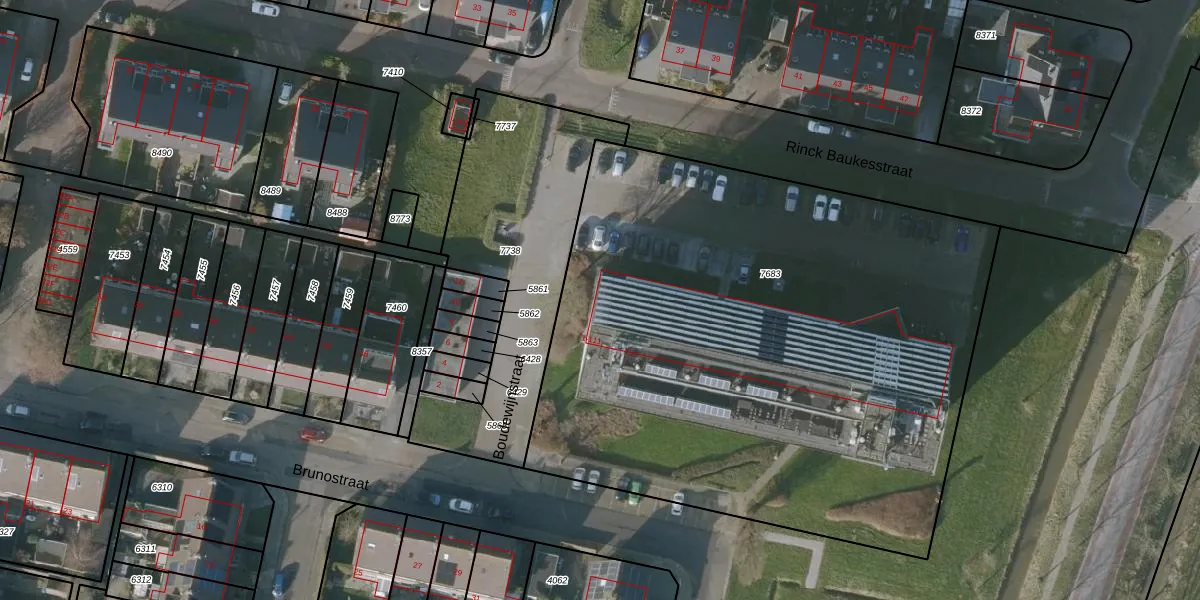Het perceel waarop Boudewijnstraat 71 staat heeft een oppervlakte van 3900 m². Dit is een zeer groot perceel. De perceeloppervlakte wordt geregistreerd door het Kadaster. Gedetailleerde informatie over de maten van dit perceel kunt u vinden in het rapport Kadastrale kaart met maatvoering van Boudewijnstraat 71.