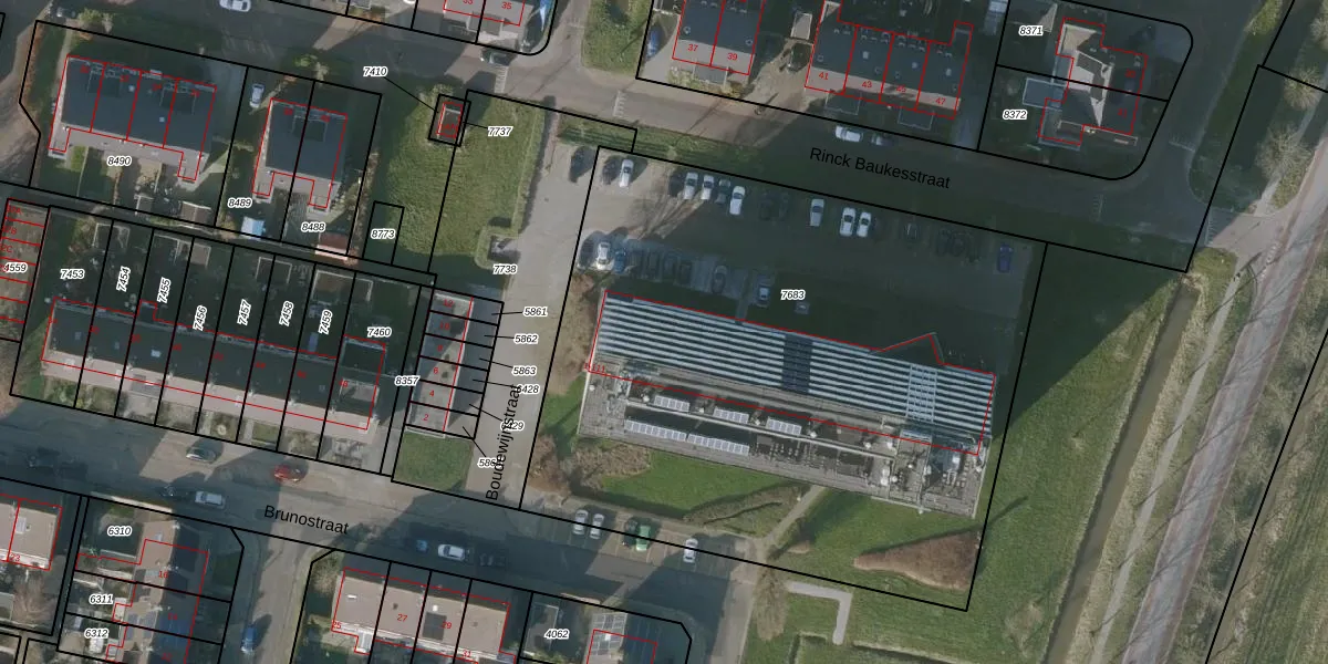 Het perceel waarop Boudewijnstraat 73 staat heeft een oppervlakte van 3900 m². Dit is een zeer groot perceel. De perceeloppervlakte wordt geregistreerd door het Kadaster. Gedetailleerde informatie over de maten van dit perceel kunt u vinden in het rapport Kadastrale kaart met maatvoering van Boudewijnstraat 73.