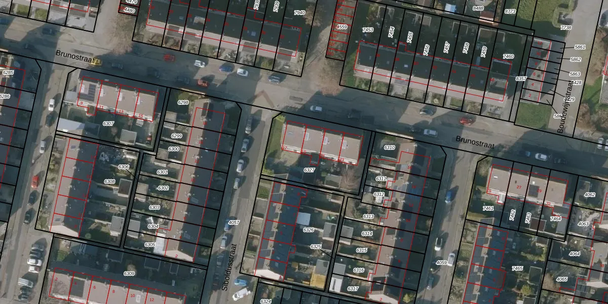 Brunostraat 19 is gelegen op kadastraal perceel BWD01B6327. Deze kadastrale aanduiding is uniek en wordt gebruikt door het Kadaster om eigendomsrechten en andere zakelijke rechten vast te leggen. Het perceel maakt onderdeel uit van de kadastrale gemeente Bolsward.
