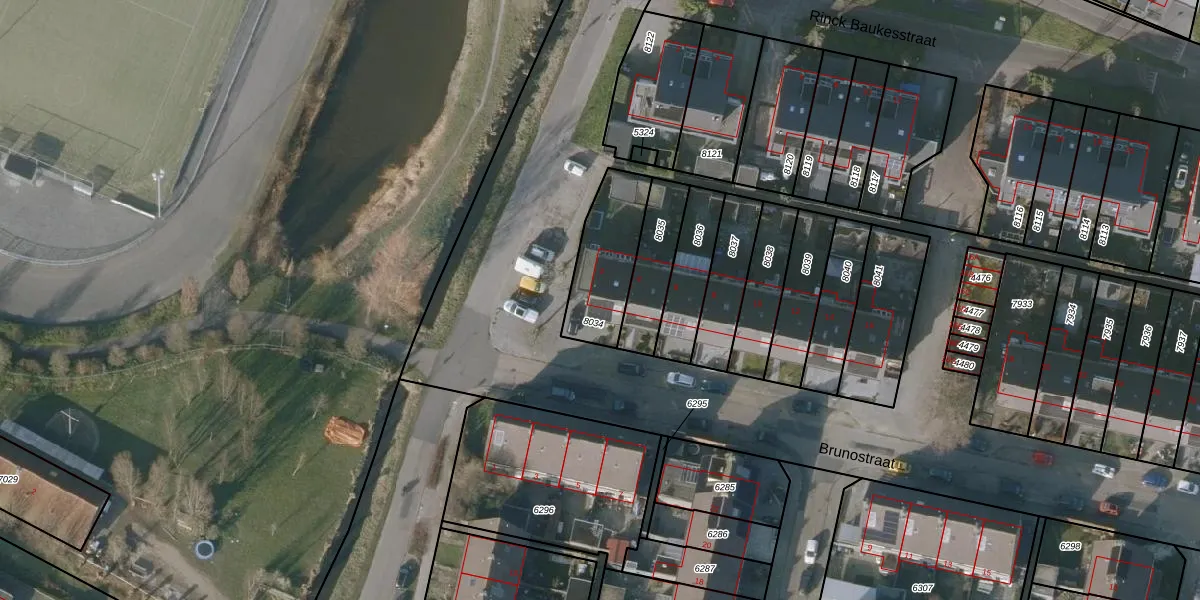 Het perceel waarop Brunostraat 2 staat heeft een oppervlakte van 270 m². Dit is een middelgroot perceel. De perceeloppervlakte wordt geregistreerd door het Kadaster. Gedetailleerde informatie over de maten van dit perceel kunt u vinden in het rapport Kadastrale kaart met maatvoering van Brunostraat 2.