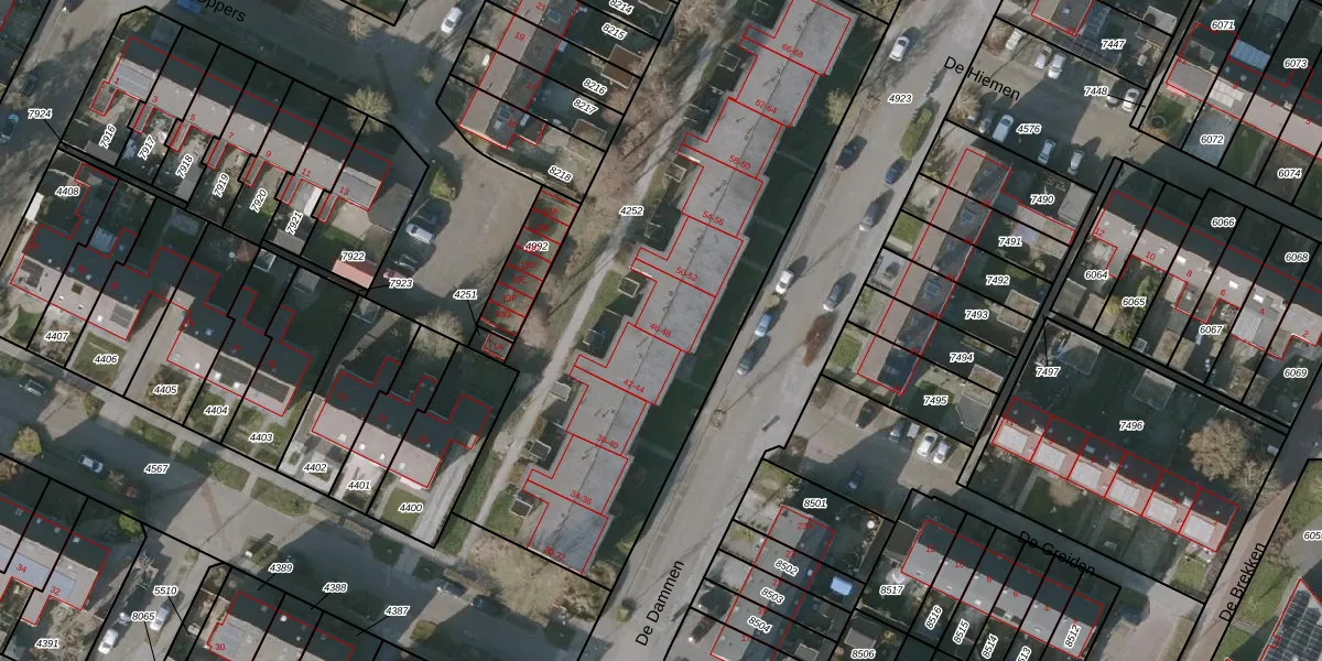 Het perceel waarop De Dammen 46 staat heeft een oppervlakte van 2776 m². Dit is een zeer groot perceel. De perceeloppervlakte wordt geregistreerd door het Kadaster. Gedetailleerde informatie over de maten van dit perceel kunt u vinden in het rapport Kadastrale kaart met maatvoering van De Dammen 46.