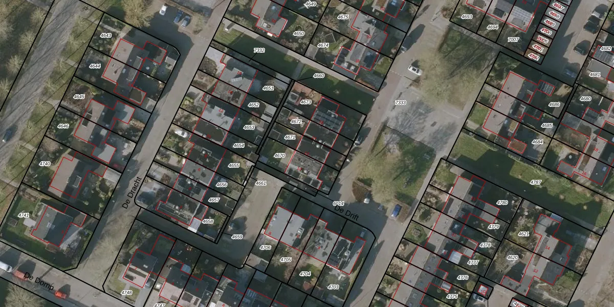 Het perceel waarop De Drift 12 staat heeft een oppervlakte van 142 m². Dit is een middelgroot perceel. De perceeloppervlakte wordt geregistreerd door het Kadaster. Gedetailleerde informatie over de maten van dit perceel kunt u vinden in het rapport Kadastrale kaart met maatvoering van De Drift 12.