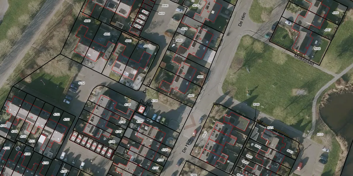 Het perceel waarop De Him 23 staat heeft een oppervlakte van 354 m². Dit is een groot perceel. De perceeloppervlakte wordt geregistreerd door het Kadaster. Gedetailleerde informatie over de maten van dit perceel kunt u vinden in het rapport Kadastrale kaart met maatvoering van De Him 23.