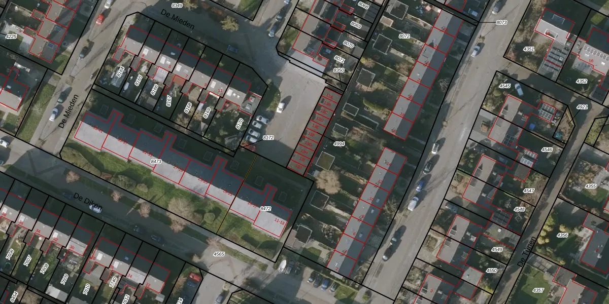 De Mieden 13-H is gelegen op kadastraal perceel BWD01B4994. Deze kadastrale aanduiding is uniek en wordt gebruikt door het Kadaster om eigendomsrechten en andere zakelijke rechten vast te leggen. Het perceel maakt onderdeel uit van de kadastrale gemeente Bolsward.