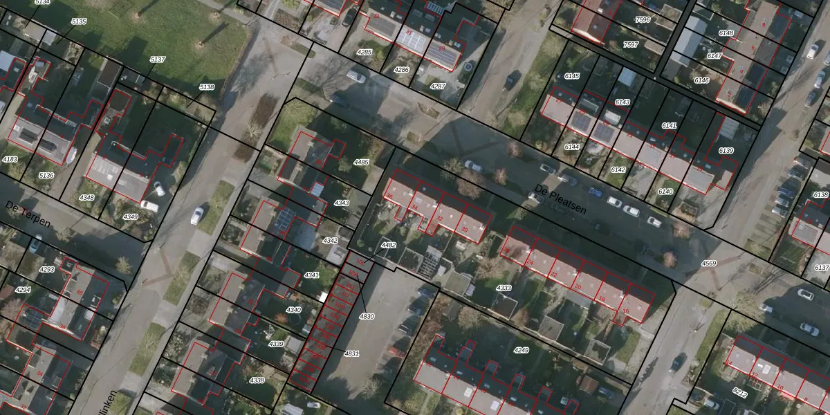 Het perceel waarop De Pleatsen 34 staat heeft een oppervlakte van 2043 m². Dit is een zeer groot perceel. De perceeloppervlakte wordt geregistreerd door het Kadaster. Gedetailleerde informatie over de maten van dit perceel kunt u vinden in het rapport Kadastrale kaart met maatvoering van De Pleatsen 34.