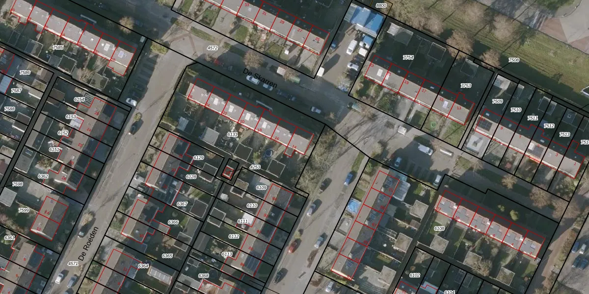De Skarren 14 is gelegen op kadastraal perceel BWD01B6131. Deze kadastrale aanduiding is uniek en wordt gebruikt door het Kadaster om eigendomsrechten en andere zakelijke rechten vast te leggen. Het perceel maakt onderdeel uit van de kadastrale gemeente Bolsward.