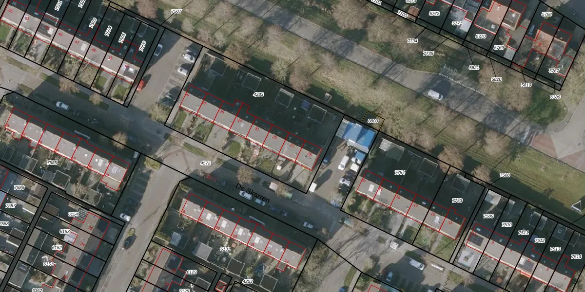 De Skarren 27 is gelegen op kadastraal perceel BWD01B4283. Deze kadastrale aanduiding is uniek en wordt gebruikt door het Kadaster om eigendomsrechten en andere zakelijke rechten vast te leggen. Het perceel maakt onderdeel uit van de kadastrale gemeente Bolsward.