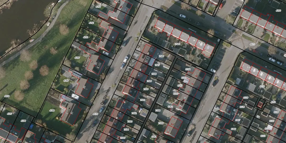 Het perceel waarop De Slachten 21 staat heeft een oppervlakte van 170 m². Dit is een middelgroot perceel. De perceeloppervlakte wordt geregistreerd door het Kadaster. Gedetailleerde informatie over de maten van dit perceel kunt u vinden in het rapport Kadastrale kaart met maatvoering van De Slachten 21.