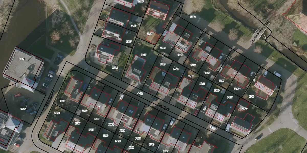 Gebruik de zoekbalk of klik op een perceel voor informatie over de adressen binnen dit perceel.