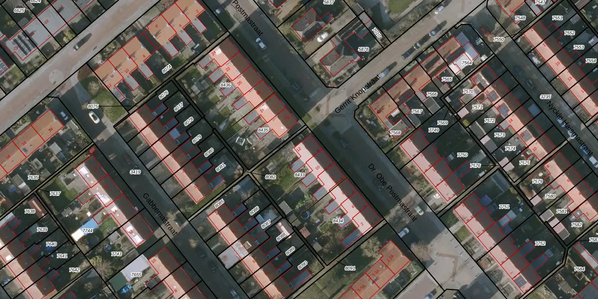 Dr. Obe Postmastraat 12 is gelegen op kadastraal perceel BWD01B8433. Deze kadastrale aanduiding is uniek en wordt gebruikt door het Kadaster om eigendomsrechten en andere zakelijke rechten vast te leggen. Het perceel maakt onderdeel uit van de kadastrale gemeente Bolsward.