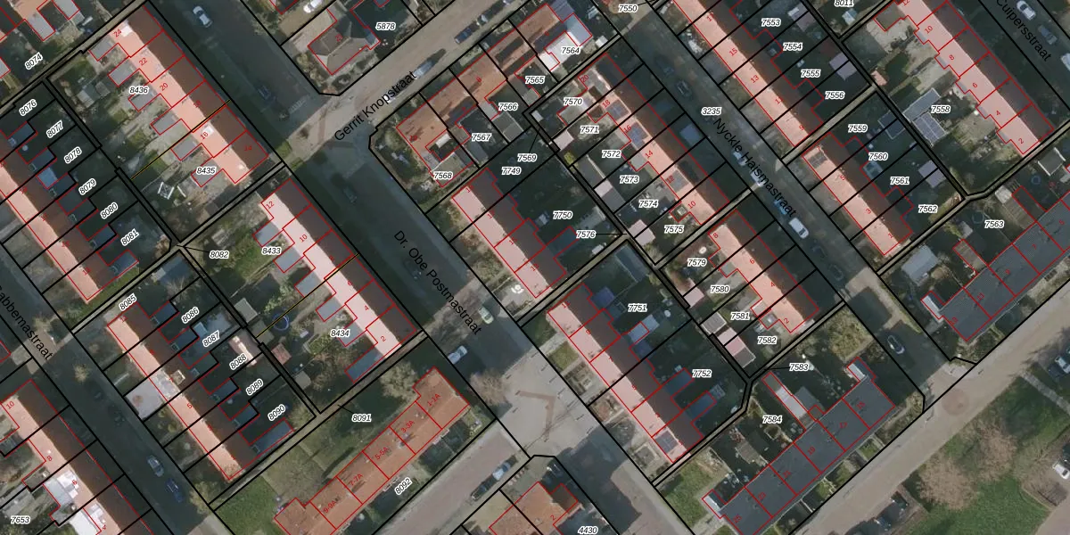 Dr. Obe Postmastraat 13 is gelegen op kadastraal perceel BWD01B7750. Deze kadastrale aanduiding is uniek en wordt gebruikt door het Kadaster om eigendomsrechten en andere zakelijke rechten vast te leggen. Het perceel maakt onderdeel uit van de kadastrale gemeente Bolsward.