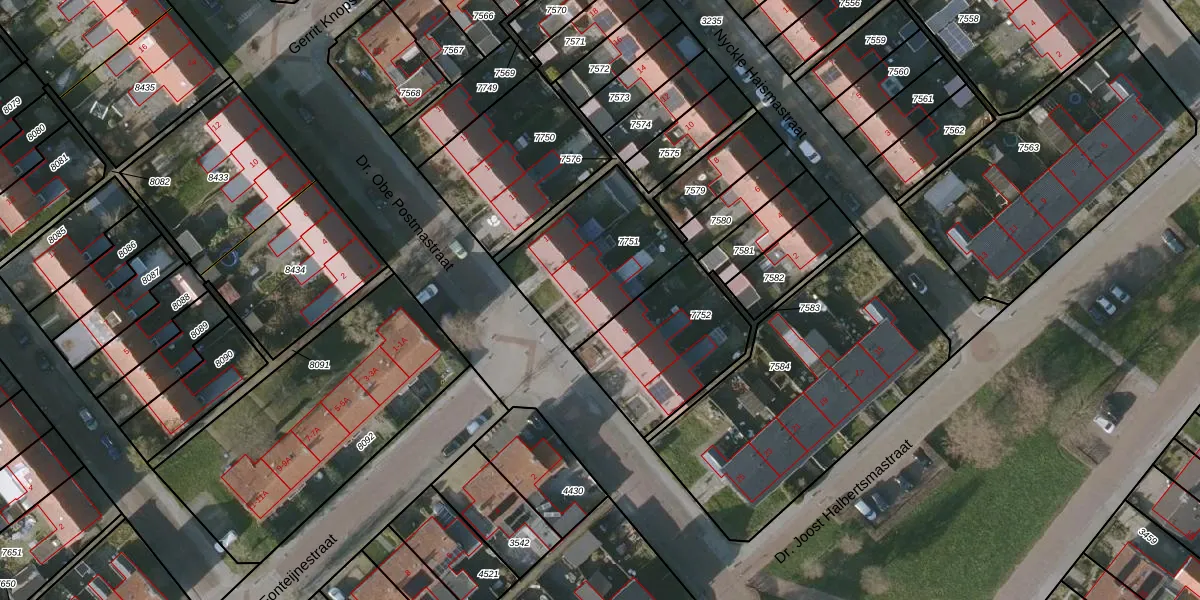 Dr. Obe Postmastraat 7 is gelegen op kadastraal perceel BWD01B7751. Deze kadastrale aanduiding is uniek en wordt gebruikt door het Kadaster om eigendomsrechten en andere zakelijke rechten vast te leggen. Het perceel maakt onderdeel uit van de kadastrale gemeente Bolsward.