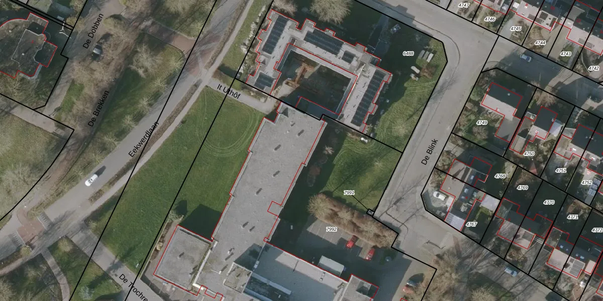Eekwerdlaan 1-208 is gelegen op kadastraal perceel BWD01B7992. Deze kadastrale aanduiding is uniek en wordt gebruikt door het Kadaster om eigendomsrechten en andere zakelijke rechten vast te leggen. Het perceel maakt onderdeel uit van de kadastrale gemeente Bolsward.