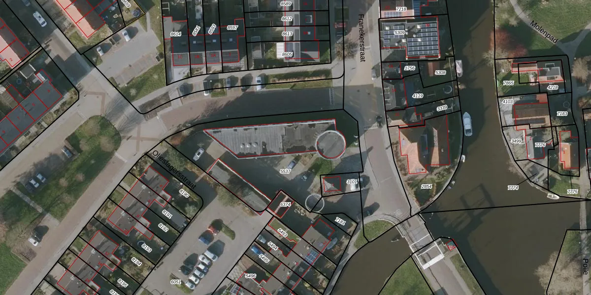 Franekerstraat 3-102 is gelegen op kadastraal perceel BWD01B5537. Deze kadastrale aanduiding is uniek en wordt gebruikt door het Kadaster om eigendomsrechten en andere zakelijke rechten vast te leggen. Het perceel maakt onderdeel uit van de kadastrale gemeente Bolsward.