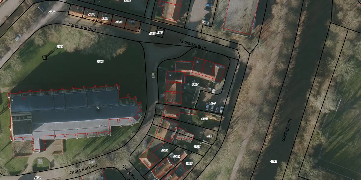 Het perceel waarop het adres ligt is BWD01-A-4467. De afkorting 'BWD01' staat voor kadastrale gemeente Bolsward. De gemiddelde perceelgrootte in Bolsward is 1701,33 m². Dit perceel is kleiner: de perceeloppervlakte bedraagt 965 m². Het kleinste perceel in de kadastrale gemeente is 0 m² groot. De grootste perceeloppervlakte is 14,5 ha. Er zijn 9 adressen aanwezig op het perceel. De huidige grenzen van het perceel zijn digitaal in de Basisregistratie Kadaster (BRK) geregistreerd op 15-01-1998.