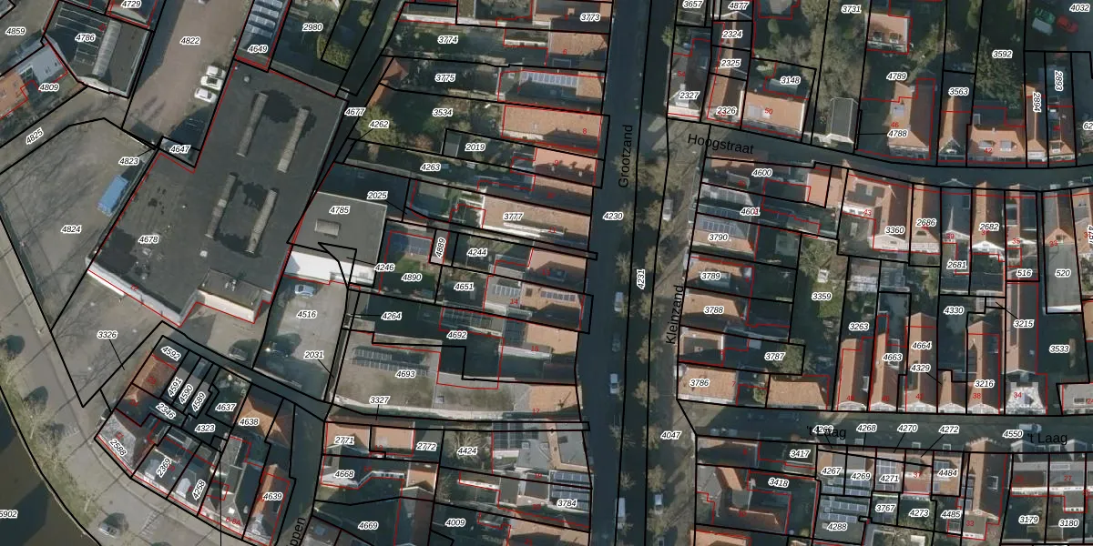 Het perceel waarop Grootzand 13 staat heeft een oppervlakte van 158 m². Dit is een middelgroot perceel. De perceeloppervlakte wordt geregistreerd door het Kadaster. Gedetailleerde informatie over de maten van dit perceel kunt u vinden in het rapport Kadastrale kaart met maatvoering van Grootzand 13.