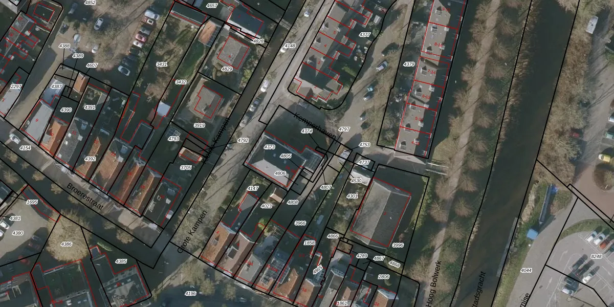 Grote Kampen 1-A is gelegen op kadastraal perceel BWD01A4773. Deze kadastrale aanduiding is uniek en wordt gebruikt door het Kadaster om eigendomsrechten en andere zakelijke rechten vast te leggen. Het perceel maakt onderdeel uit van de kadastrale gemeente Bolsward.
