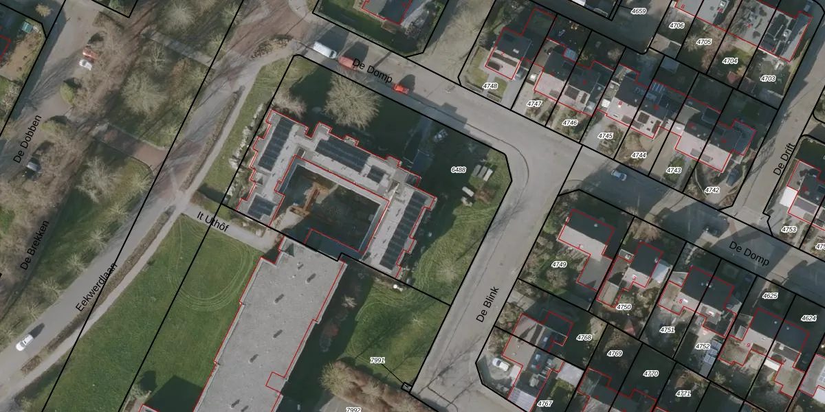 Het perceel waarop het adres ligt is BWD01-B-6488. De afkorting 'BWD01' staat voor kadastrale gemeente Bolsward. Het perceel is met 2413 m² relatief groot. Het gemiddelde ligt in de kadastrale gemeente Bolsward op 1701,63 m². Het kleinste perceel in de kadastrale gemeente is 0 m² groot. De grootste perceeloppervlakte is 14,5 ha. Op het perceel zijn 18 adressen aanwezig. In de Basisregistratie Kadaster (BRK) werden de grenzen van het perceel geregistreerd op 15-01-1998.