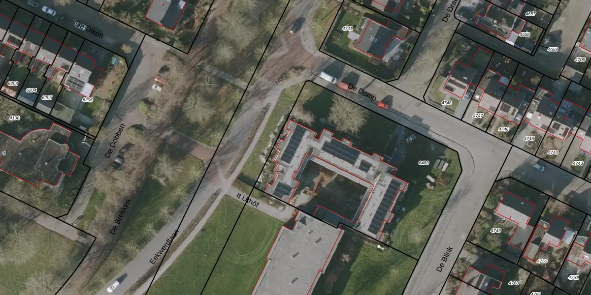 Het perceel waarop het adres ligt is BWD01-B-6488. De afkorting 'BWD01' staat voor kadastrale gemeente Bolsward. Het perceel is met 2413 m² relatief groot. Het gemiddelde ligt in de kadastrale gemeente Bolsward op 1701,33 m². Het grootste perceel in de kadastrale gemeente is 14,5 ha. Het kleinste perceel heeft een oppervlakte van 0 m². Er zijn 18 adressen aanwezig op het perceel. De huidige grenzen van het perceel zijn digitaal in de Basisregistratie Kadaster (BRK) geregistreerd op 15-01-1998.