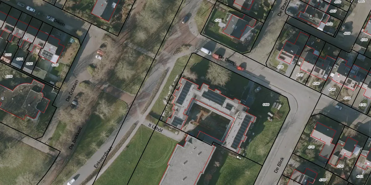 Het perceel waarop het adres ligt is BWD01-B-6488. De afkorting 'BWD01' staat voor kadastrale gemeente Bolsward. Het perceel is met 2413 m² relatief groot. Het gemiddelde ligt in de kadastrale gemeente Bolsward op 1705,94 m². De grootste perceeloppervlakte in de kadastrale gemeente is 14,5 ha. De kleinste oppervlakte bedraagt 0 m². Op het perceel liggen in totaal 18 adressen. De laatste wijziging in het de Basisregistratie Kadaster (BRK) was op 15-01-1998.